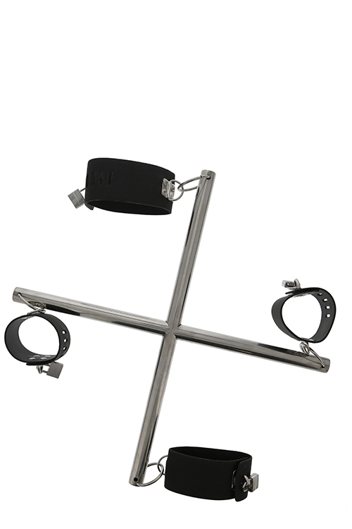 Ten zestaw zatrzymuje w niewoli tylko ciało, pozostawiając nieskończoną przestrzeń dla wyobraźni. Szekle mocują nadgarstki i kostki za pomocą bezpiecznych i trwałych taśm, które z kolei są przymocowane do centralnego krzyżaka. Wszystko czego potrzebujesz na noc pełną żywych wrażeń.
