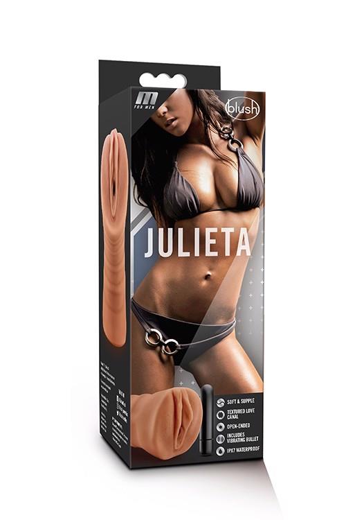 M for Men Julieta jest miękka, elastyczna i gotowa do użycia w każdej chwili. Ten realistyczny stroker jest ciasny, ale podatny i wypełniony rewelacyjnymi teksturami. Jest wyposażony w wibrującą kulę, która zwiększa doznania. Otwarta i łatwa w czyszczeniu Julieta pomieści penisa każdego rozmiaru. Wykonany z najwyższej jakości TPE, jest wysokiej jakości i bezpieczny dla ciała. Wibracja pocisku wymaga 1 baterii AAA (brak w zestawie).