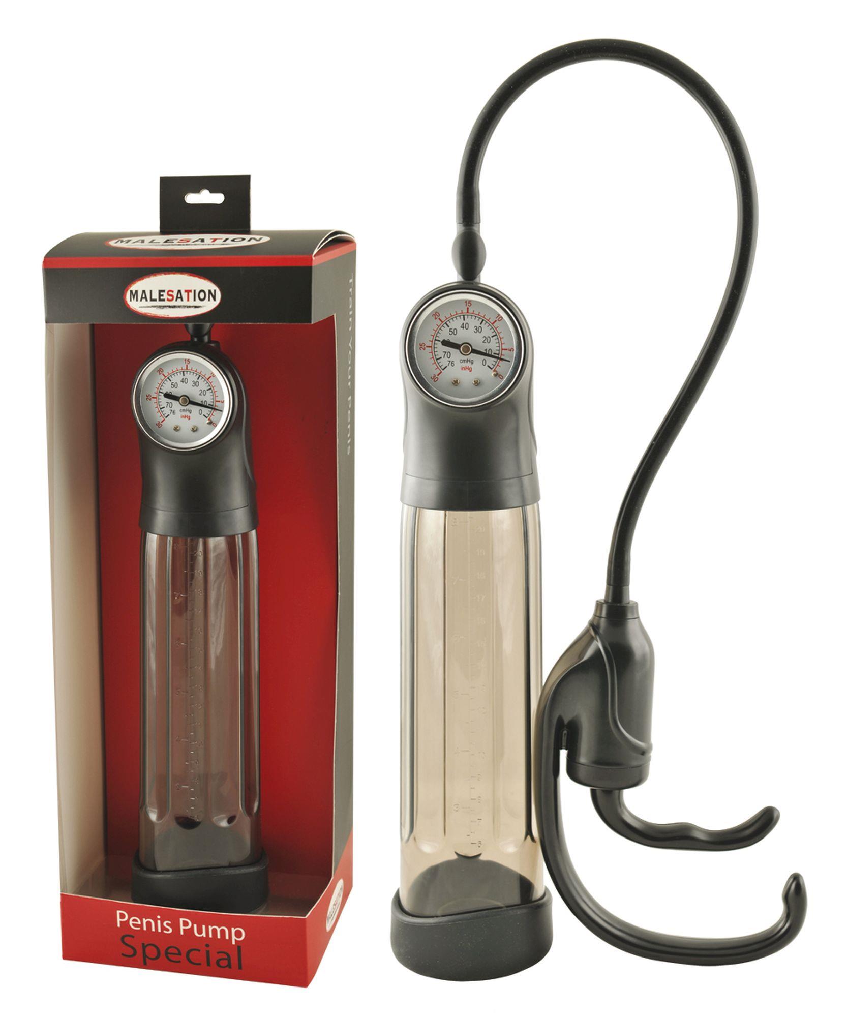 MALESATION Penis SpecialWykonany z silikonu i tworzywa ABS. Przezroczysty cylinder jest wysokiej jakości przetworzony i łatwy do czyszczenia. Ciśnienie jest mierzone w PSI. Wymiary z cylindra: długość 24cm, Ø wewnątrz 6,3cm