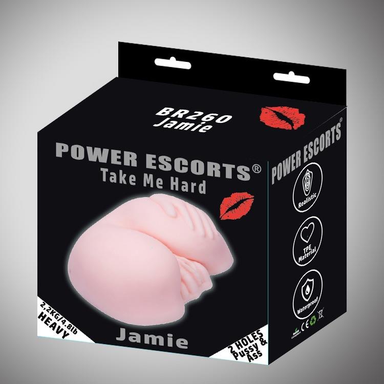 Power Escorts – Take me Hard Jamie – Realistyczny duży, elastyczny masturbator waginy i tyłka – 2,2 kg – Beżowy – BR260 – Solidne pudełko na prezent