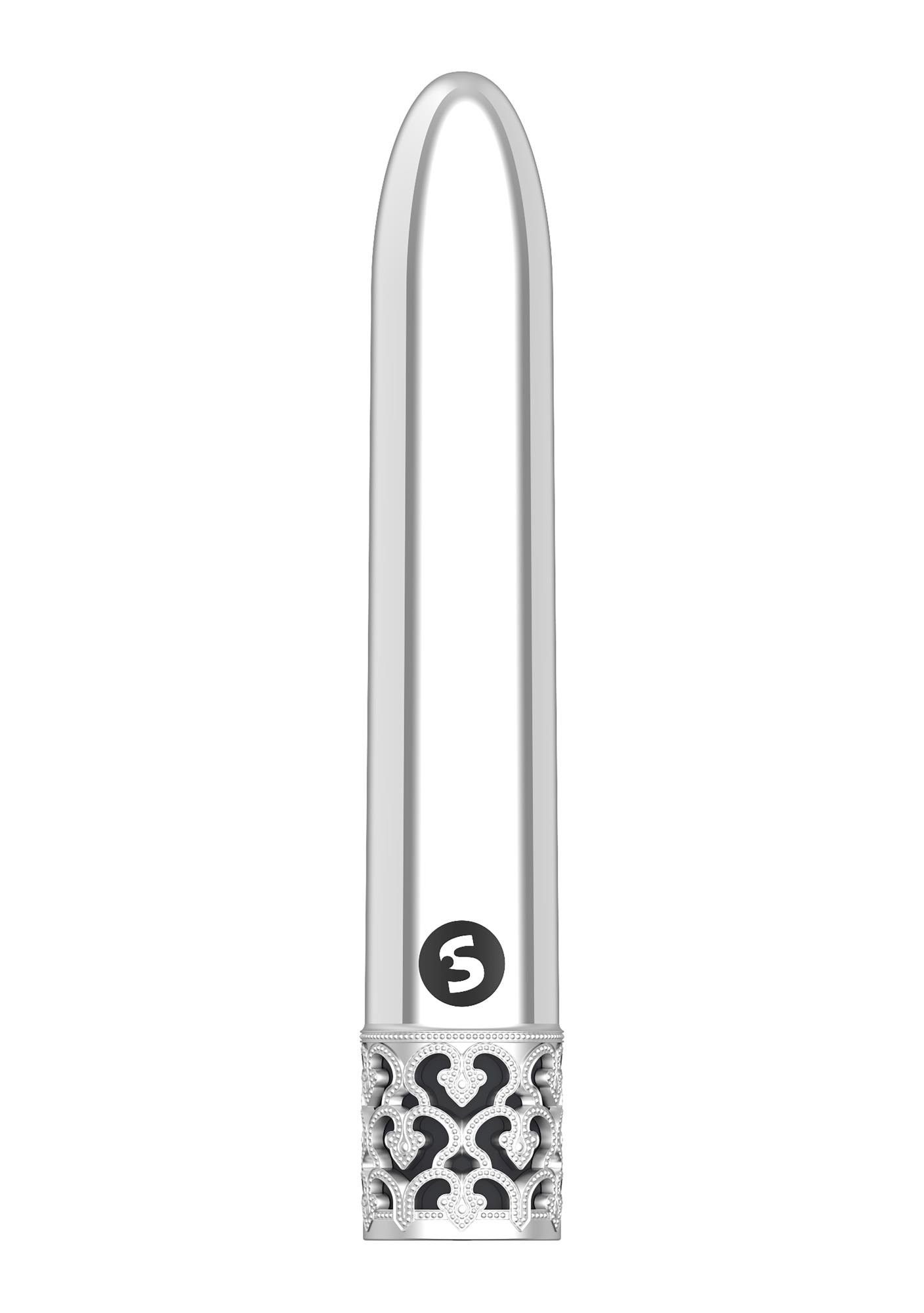 Nie musisz należeć do królewskiego rodu, by cieszyć się tą elegancką linią. Dzięki lśniącemu metalowemu wykończeniu ten wibrator stanie się klejnotem w koronie każdej kolekcji. Model Shiny jest smukły i długi, wspaniale stymuluje wewnętrznie lub od zewnątrz. Magnetyczna, działająca całkowicie na akumulator konstrukcja zawiera opatentowany silniczek nowej generacji F-1 i zapewnia oszałamiające wibracje rozłożone równomiernie na całej powierzchni zabawki. Nie musisz zadowalać się tym, co pospolite, jeżeli możesz wybrać królewską jakość.