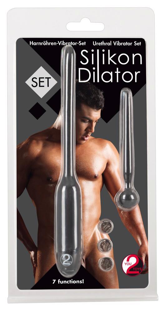 Urethral pleasure WITH and WITHOUT vibration! Dilator vibrator plus a penis plug in a set. Everything is seamless and made out of the finest silicone for easy-going fun and a pleasant feeling when they are being worn. The dilator vibrator has 7 vibration modes at the push of a button. Slightly cone-shaped penis plug with a stopper. Includes batteries (3 x LR44).Dilator vibrator: complete length 19.1 cm, insertion length 11 cm, Ø 0.8 cm, weight 34 g; plug: complete length 9.6 cm, insertion length 8 cm, Ø 0.5 cm to 0.8 cm, stopper Ø 1.6 cm, weight 6 g. Silicone, PU, ABS.