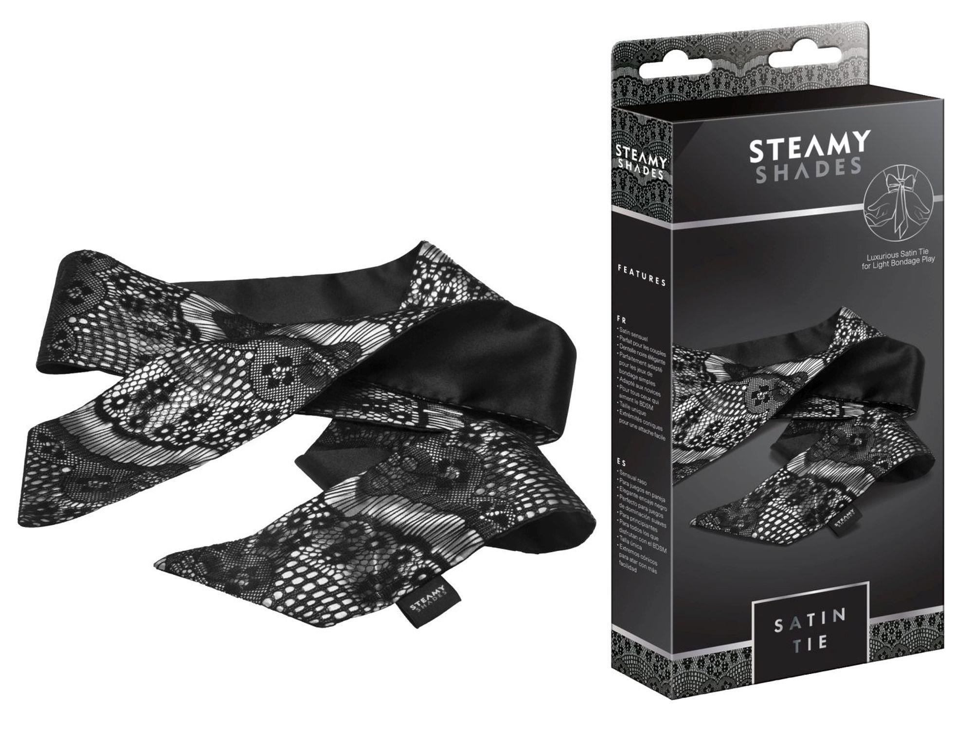 “STEAMY SHADES Satin Tie”Wykonana ze zmysłowej satyny, przyjazna parom, elegancka przezroczysta czarna koronkowa nakładka, idealna do lekkiej zabawy w bondage, przyjazna dla początkujących, must-have BDSM, Rozmiar uniwersalny, zwężane końce ułatwiające wiązanie. 100% poliestru